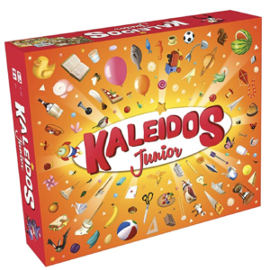 Y por último, KALEIDOS JUNIOR, es el típico juego del veo veo, para trabajar atención y vocabulario. En un tiempo determinado (incluye reloj de arena) debemos encontrar la mayor cantidad de elementos en la imagen que correspondan con la categoría o la letra seleccionada que nos haya salido en la ruleta. Este juego está genial, porque lo podemos hacer de forma oral con los más pequeños, y con más mayores que vayan escribiendo las palabras en un papel.