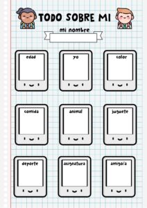 Os enseño dos sencillas actividades que haré hoy con ellos, espero que les gusten mucho. En la de “todo sobre mi” me inspiré en varios modelos vistos en google. Tienen que escribir sus gustos y dibujarlos, así poderlos conocer mejor. Y la segunda ficha, el Tarro de los Deseos, los alumnos escribirán qué deseos les gustaría cumplir en este curso escolar.