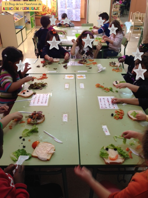 Pues bien, la tutora de ese curso, Neus Miranda, sigue trabajando en su proyecto de la figura humana, y hoy, con la ayuda de la profesora de apoyo Sonia Pastor que es la encargada del huerto escolar del colegio, y de los alumnos de 4 años, han elaborado unos riquísimos sándwiches vegetales, con las hortalizas sembradas y recogidas posteriormente por los mismos niños de Educación Infantil, como son tomates, lechugas y zanahorias.