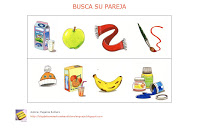 COLECCIÓN FICHAS_BUSCA SU PAREJA, también para trabajar el ámbito perceptivo-visual, esta vez trabajando el vocabulario estudiado hasta el momento: alimentos, ropa, juguetes, animales, transportes,etc.