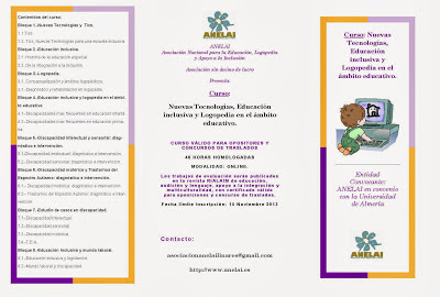 ANELAI: Asociación Nacional de educación, Logopedia y apoyo a la Integración ofrece un curso de modalidad on-line sobre Nuevas Tecnologías, Educación inclusiva y Logopedia en el ámbito educativo.