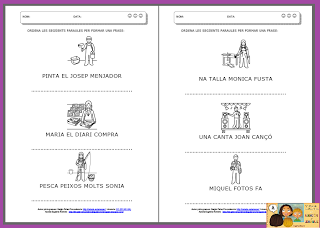Más fichas de comprensión lectora, esta vez ordenando palabras para formar frases, en castellano y en catalán.
