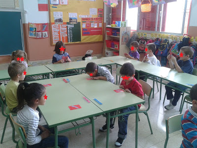A lo último ya he ido incluyendo más pistas en la instrucción: ¡que se levanten l@s niñ@s que tienen un animal que vuela! o ¡que se levanten l@s que tienen una fruta!