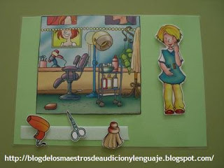 La semana pasada preparé un material para trabajar las profesiones aprovechando que el día 1 de Mayo fué el día del trabajador.Las imágenes son de la Revista nº3 de Educación Especial de la Editorial Ediba, yo me la compro cada mes, no siempre vienen cosas interesantes, pero voy guardando y a veces se me ocurre hacer algo con ellas, como es el caso de este juego, en el que entra el personaje y su profesión, el lugar donde realiza su profesión y los utensilios que necesita (tres para cada uno).