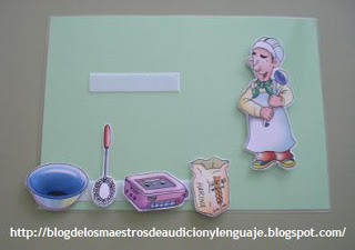 Otro juego, buscar el utensilio intruso, el que no pertenece al personaje que hemos puesto, y que lo coloquen en el velcro correspondiente.