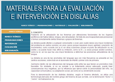 Una compañera del blog, Pilar Rajó Carrera, nos manda este enlace interesante, sobre MATERIALES PARA LA EVALUACIÓN E INTERVENCIÓN DE LAS DISLALIAS. En él encontraréis, a parte del marco teórico, programaciones, materiales, evaluación y bibliografía.