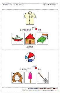 He empezado a realizar un PROGRAMA PARA EL ENTRENAMIENTO DE LA CONCIENCIA FONOLOGICA, lo he bautizado con el nombre de: PEC-FONO, utilizando los pictogramas de Sergio Palao que nos ofrece ARASAAC, ya que he recibido un par de e-mails pidiéndome si disponía de algún material para trabajarla.Empiezo con la parte de SEGMENTACIÓN SILÁBICA, con el juego QUITAR SÍLABAS. Os incluyo al final del documento las fichas con los pictogramas en blanco y negro para facilitar la impresión.