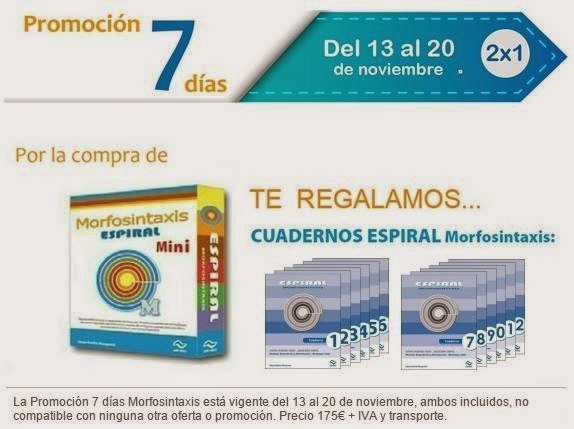 Cada promoción tiene una validez de 7 días, y esta semana, por la compra de MORFOSINTAXIS ESPIRAL regalan los cuadernos de ESPIRAL MORFOSINTAXIS.