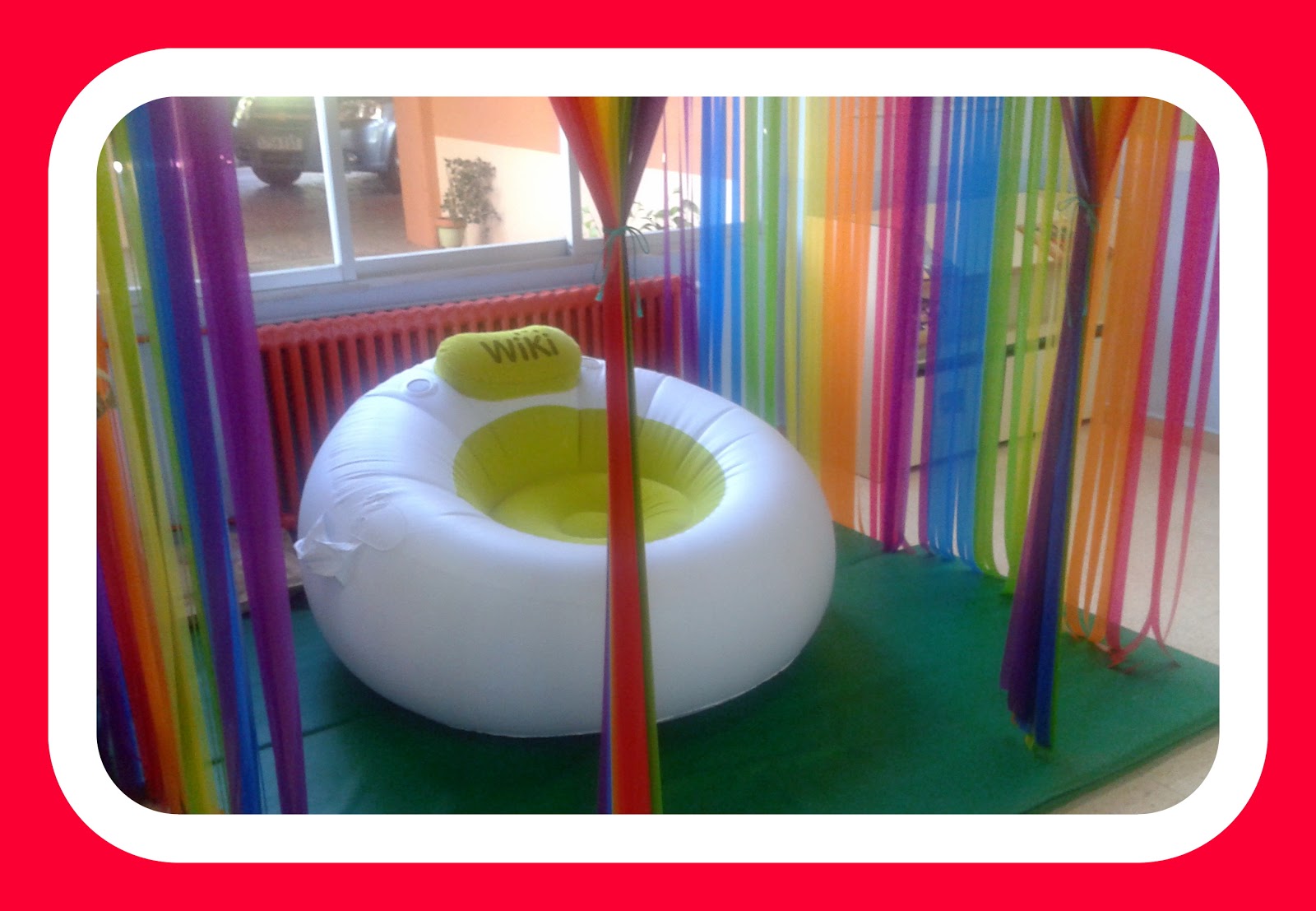 Este PUFF es musical, puedes conectarle un mp3, o el mismo movil como he hecho yo, jeje, y no veáis qué relajación, es muy chulo, y a los niñ@s del aula UEECO les ha chiflado, sólo basta con verles las caritas, qué gusto!!!