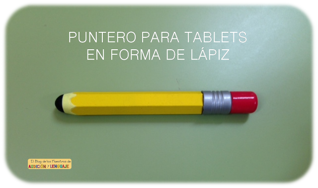 Pues bien, hoy mi compañera AL Mónica ha traído uno súper divertido y además funcional, es un puntero para utilizar en tablets con forma de lápiz, tiene un grosor considerado para poder coger con más facilidad, y sobre todo, en el caso de la alumna que lo necesita, le viene genial porque además lo utilizará con una carcasa especial para su ipad (más adelante os la enseñaré).