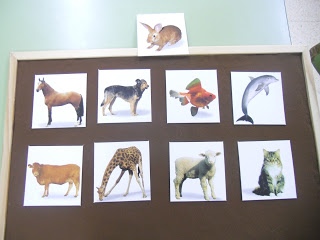 Primero he aprovechado unas imágenes con fotos reales de un juego de Maxiloto de la editorial Nathan, además así practico también vocabulario por campos semánticos, como los animales, los alimentos, los juguetes, etc y las adivinanzas y descripciones. Se puede realizar también con pictogramas de ARASAAC o con recortes de revistas, como más os guste.