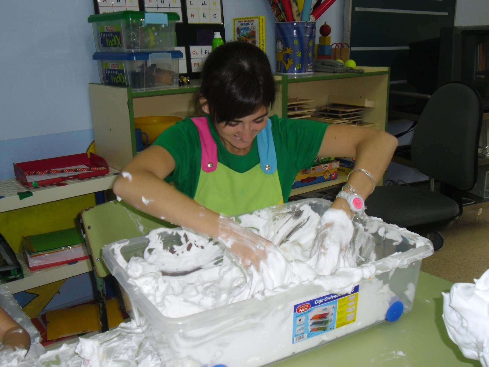 Mi peque hizo este verano integración sensorial y cada día le dedicaban un rato a trabajar con la espuma como tu has hecho, ademas de mejorar la hipersensibilidad se divierten mucho, asi que como siempre tus ideas son fantasticas y mucha gente puede conocerlas!! GRACIAS.