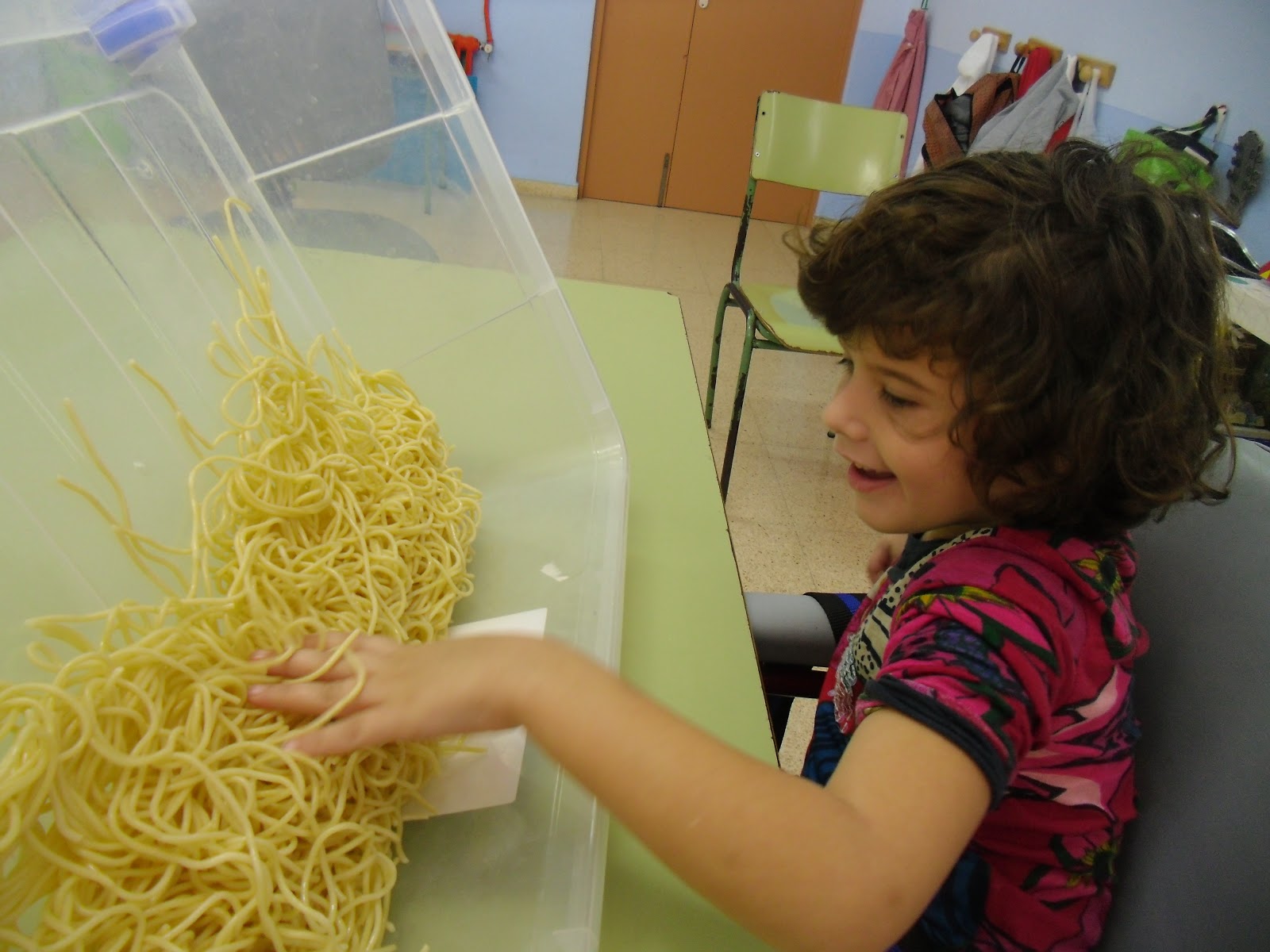 Y hoy hemos jugado en el TALLER MULTISENSORIAL ¡¡¡con spaguettis de colores!!! Lo vi el mes pasado en el BLOG EL SONIDO DE LA HIERBA AL CRECER, de ANABEL CORNAGO, y lo vi estupendo para mis talleres de la UEECO, y también han sido todo un éxito!!