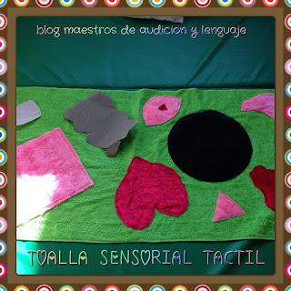 Mi compañera PT del aula UEECO, SANDRA MOYA, ha traido un trabajo que realizó hace unos años, y que también es estupenda para trabajar el tacto, y es hacerte tu propia toalla sensorial. En su caso compró retales de telas como imitación a pelos, a terciopelo, etc, y los cosió a una toalla. ¿A qué también es una idea genial?