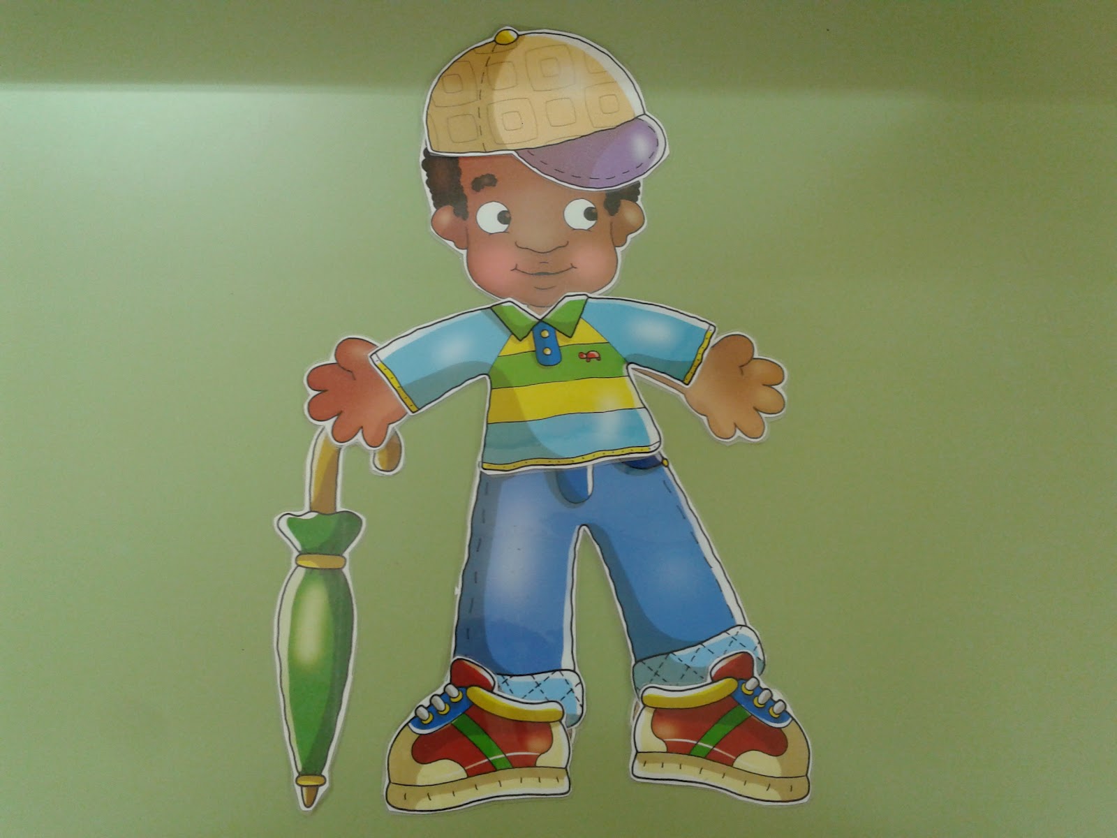 Se trata de coger un dibujo de un niño y prendas de vestir (yo uso las de la revista Maestra de Infantil). Primero nombramos todas las prendas que tenemos encima de la mesa, luego las vamos colocando encima del niño-a, incluso nos podemos equivocar colocando alguna prenda en otro lugar para saber si el-la niñ@ está atent@.