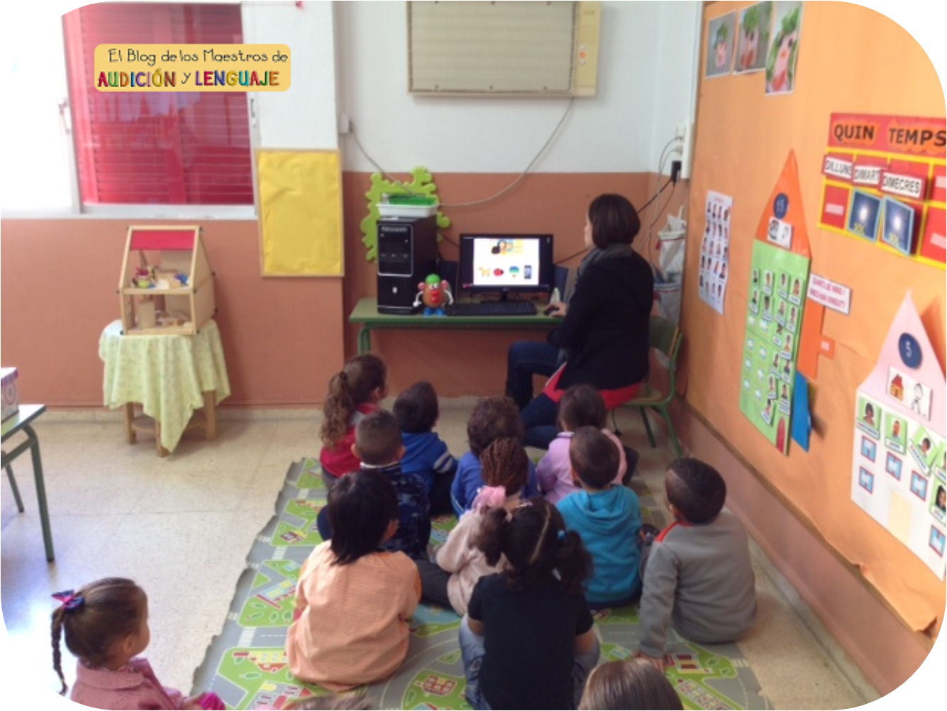 Ayer hicimos el juego del sonido y el silencio, nos colocamos en círculo sentados en la alfombra, nos preparamos frotando las manos, nos las llevamos a los oídos, estamos unos 5 segundos tapándolos, y luego al quitar las manos de los oídos, debemos permanecer en silencio y escuchar los sonidos que se producen en la calle, en el pasillo del colegio, etc.