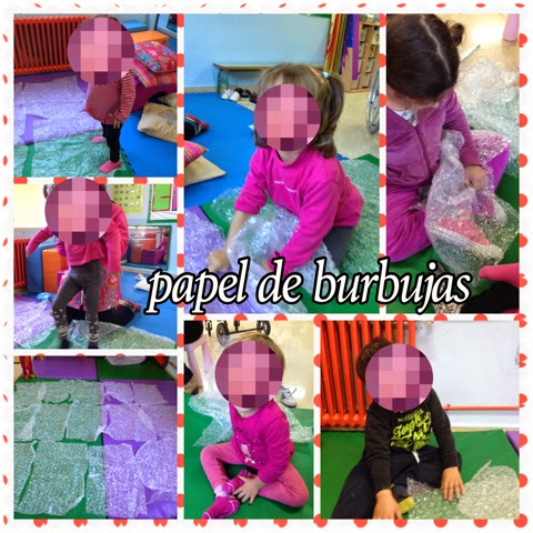 Y además, Sandra, la PT y tutora del aula, luego aprovechó los restos de papel de burbujas para hacer un taller de plástica.